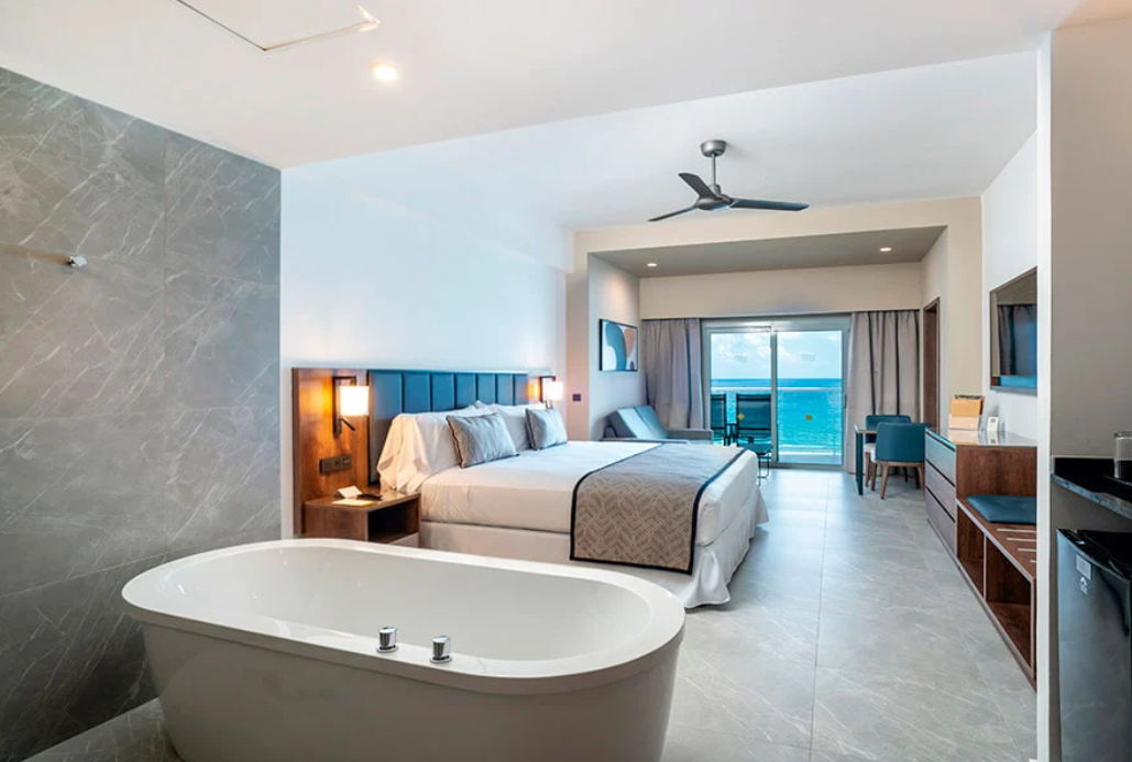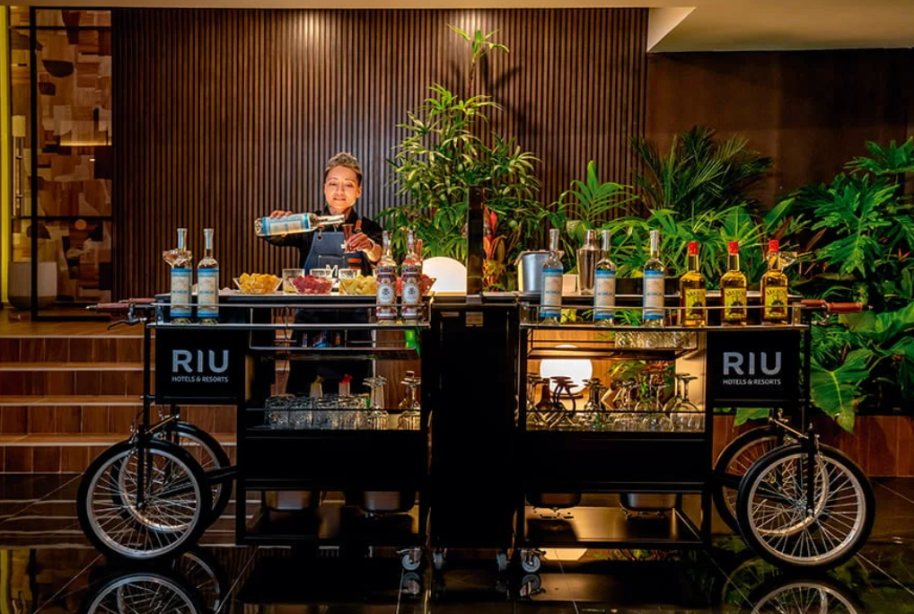 The Hotel Riu Palace Kukulkan is located in front of the most beautiful beaches in the Hotel Zone of Cancun, Mexico, within walking distance of the main shopping center, restaurants, and local attractions of the area. It’s the perfect paradise for a dream vacation in the Caribbean. With an elegant style, this All-Inclusive resort in Cancun has more than 400 superior category rooms, many of them with unparalleled ocean views. All the rooms have been designed to guarantee our guests a great night’s sleep and the utmost comfort. During your stay, you’ll enjoy room service available 24 hours, a regularly refilled minibar and liquor dispenser, and TV Casting for you to stream your favorite content from your own device. In the morning, guests can enjoy a complete breakfast buffet with live cooking, fresh fruit, juices, and many more options to choose from. Embark on a unique culinary experience at this hotel in Cancun, Mexico where you can savor the different flavors of the world with our wide range of dining options. We suggest sampling the best in international cuisine at the main restaurant with live cooking stations, as well as at our à la carte Asian, Mexican, and Italian restaurants. As you can see, you have a wide variety of F&B venues including a Burger bar by the pool and an ocean-view Lounge bar with an outdoor terrace. Plus, with the All-Inclusive you’ll have plenty of snacks, ice creams, and international drinks with top brands to choose from all day long at the swimming pool bars and the lobby bar, where we offer the mixology Experience featuring a daily signature drink.