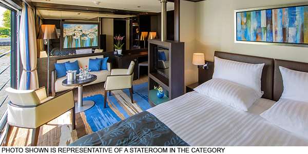 Located on the Indigo Deck (Forward & AFT)Suite features include: Comfort Collection BedsEgyptian super-combed cotton linensSoft & firm pillowsChoice of bed configurationBedside tables with reading lampsL'Occitane bath productsEasy under-bed luggage storageAlarm clockBathrobes & slippersComplimentary bottled waterIndividual climate controlLarge mirror in bathroomUSB PortsFull shower with glass doorVanity and lighted makeup mirrorLuxurious mattress toppersEuropean-style duvetsExtra blanketsNightly turn-down serviceHairdryerSpacious 3-door closets with shelves for ample storageFlatscreen satellite TV with English-speaking channels & over 100 free movie optionsDirect-dial telephoneWell-stocked minibarIn-room safeElegant, contemporary designComplimentary Wi-FiTwo windowsWriting desk and chair